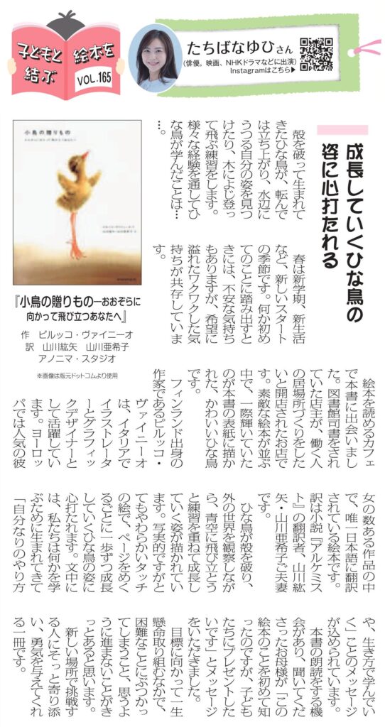 「子どもと絵本を結ぶ」VOL.165で『小鳥の贈りもの』を紹介させていただきました。